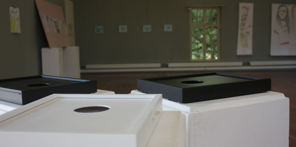 Maite's work is related to the way we humans treat our natural resources. The work is changing: it shows the process of exhaustion. In her piece, only the first layer was colored, by draining it in ink. This layer supplies all subsequent layers with ink, until there is no more ink to be substracted and only the vacuum shape of the first one reminds (but still, there is a shape. A new beginning a possibility to continue). The first layer is therefore full and the last layer almost empty.